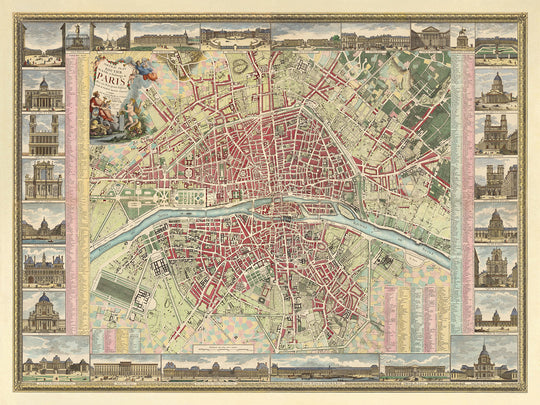 Grande carte de Paris par Esnauts & Rapilly, 1784: Louvre, Notre-Dame, Champs-Élysées, Bois de Boulogne, Pont Neuf