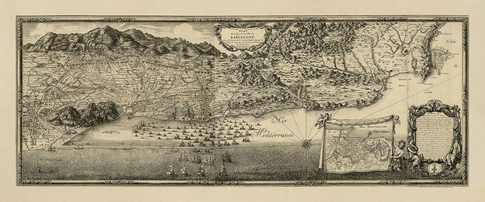 Sébastien Pontault de Beaulieu, ingénieur militaire et cartographe de renom, a apporté à cette carte ses vastes connaissances et son expertise. Son travail est reconnu pour sa précision et sa profondeur, offrant des informations précieuses sur les stratégies militaires et les fortifications de l'époque. Cette carte témoigne non seulement du talent de Beaulieu, mais constitue également un document historique précieux qui met en lumière la dynamique complexe de la guerre de la Grande Alliance et l'importance durable de Barcelone dans l'histoire européenne.
