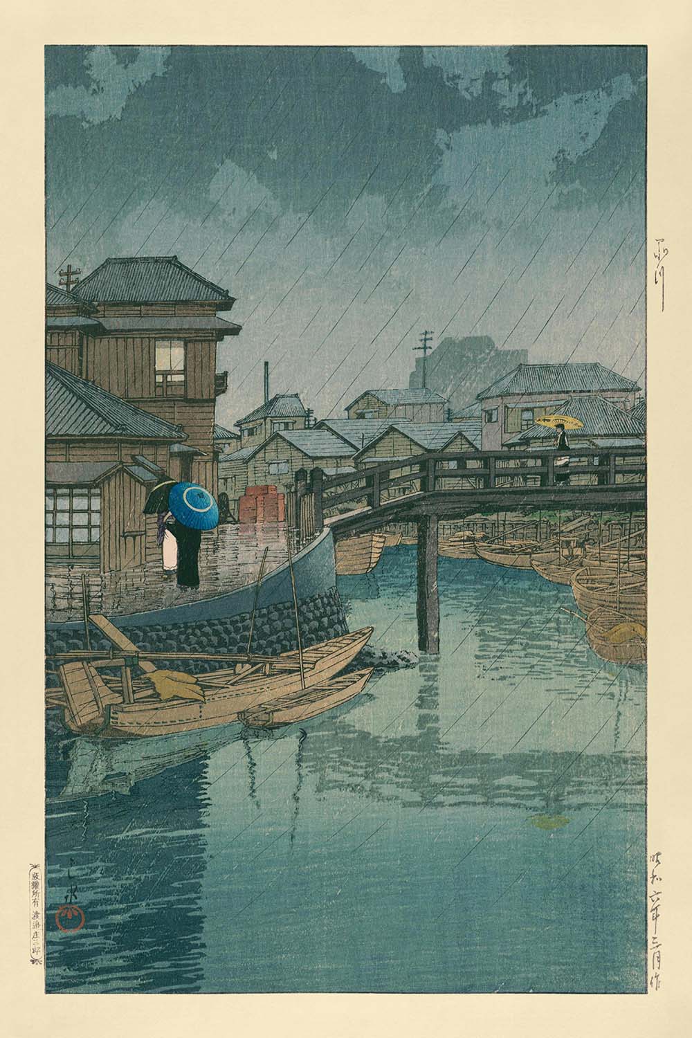 Saison des pluies à Ryoshimachi, Shinagawa par Hasui Kawase, 1935