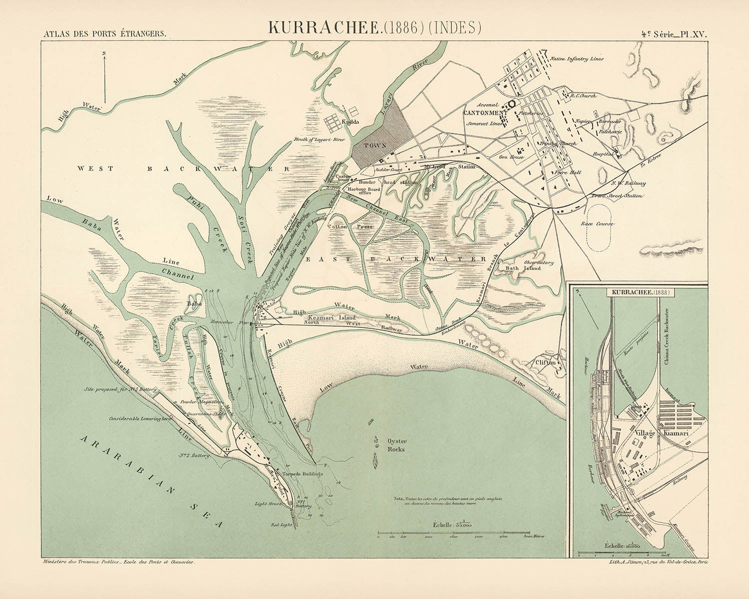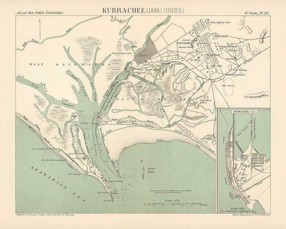 - Cartes insets : "Kurrachee (1888)" montrant le développement ultérieur du port.