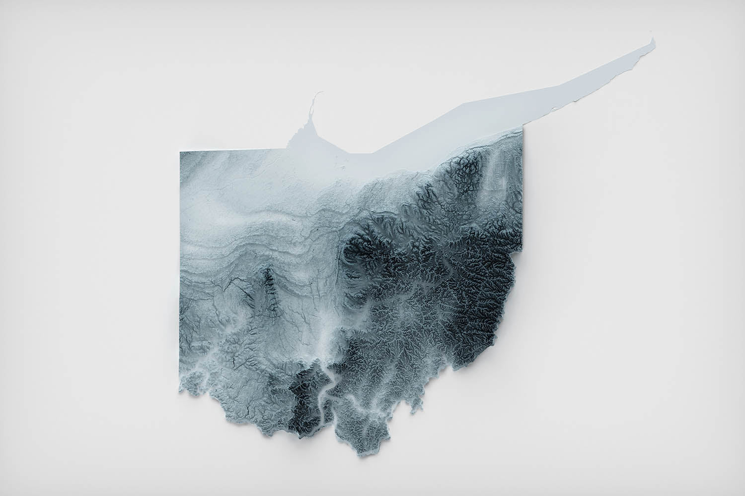 Célébrez les paysages de l'Ohio, États-Unis d'Amérique, avec cette carte en relief finement détaillée—un hommage à la beauté subtile et à la géographie diversifiée de l'État de Buckeye. Des douces ondulations du nord glacié aux collines vallonnées du sud, la carte donne vie à la topographie de l'Ohio à travers des variations délicates de hauteur et d'ombre.
