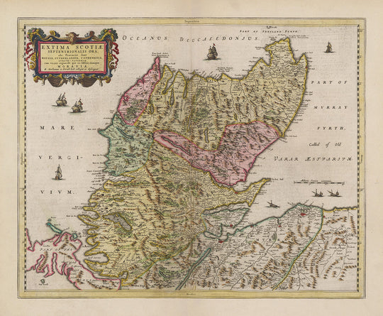 Ancienne carte des Highlands d'Écosse, 1665 par Blaeu: Caithness, Sutherland, Ross, Nairn, Inverness, Moray