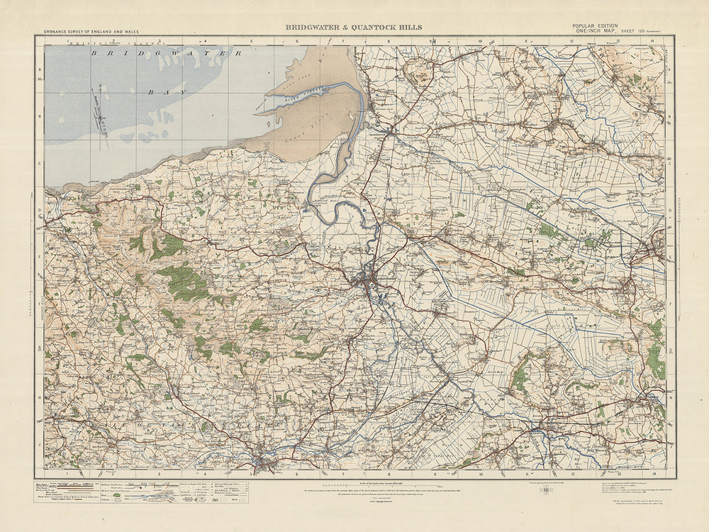 Carte Old Ordnance Survey, feuille 120: Bridgwater & Quantock Hills, 1925 : Taunton, Glastonbury, Williton, Highbridge, Burnham-on-Sea