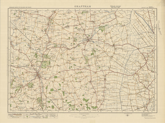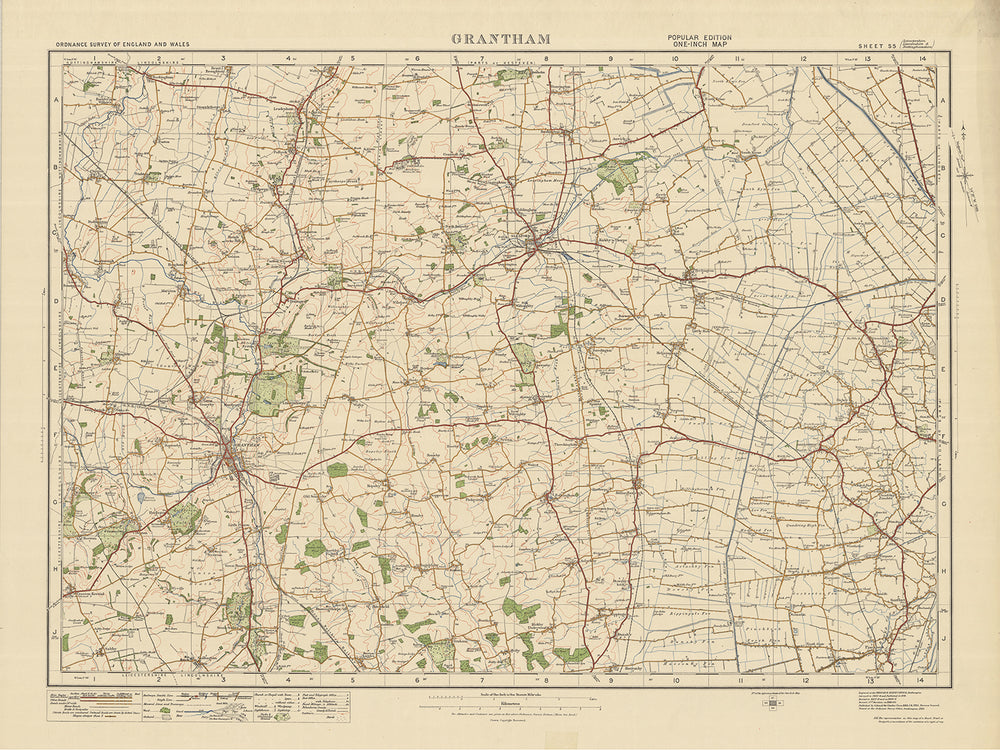 Carte Old Ordnance Survey, feuille 55: Grantham, 1925 : Sleaford, Donington, Long Bennington, Ruskington, Swineshead