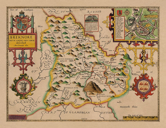 Dans le coin supérieur droit se trouve une belle gravure détaillée de la ville de Brecon.