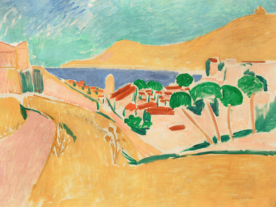 Matisse, une figure clé du mouvement fauviste, était renommé pour ses palettes de couleurs dynamiques et ses techniques innovantes. "Collioure en août" illustre la capacité remarquable de l'artiste à capturer la lumière et l'atmosphère à travers l'utilisation de teintes vives et de formes simplifiées. Les couleurs dominantes de la peinture incluent un jaune radieux, des verts luxuriants et des bleus sereins, qui transmettent magnifiquement l'énergie vibrante et la tranquillité d'une journée d'été à Collioure.