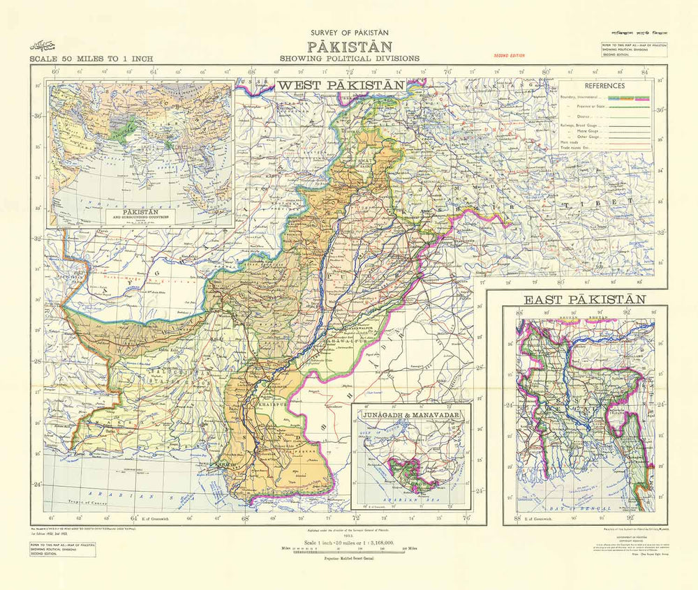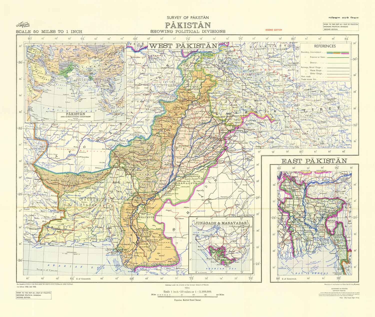 Première carte du Pakistan, 1953: Ancienne carte de l'Ouest et de l'Est indépendants