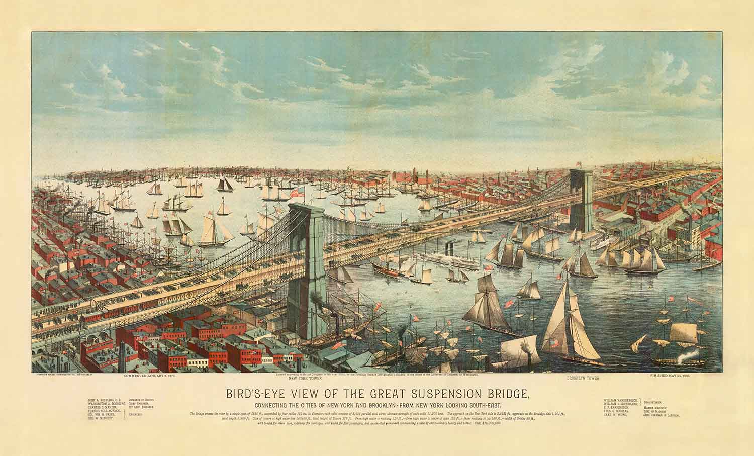À son ouverture, le Grand Pont de l'East River, comme il était appelé, était le plus long pont suspendu du monde et était le premier pont fixe traversant l'East River. Il a été renommé pont de Brooklyn en 1915 lorsque Brooklyn est devenu une partie de New York City.