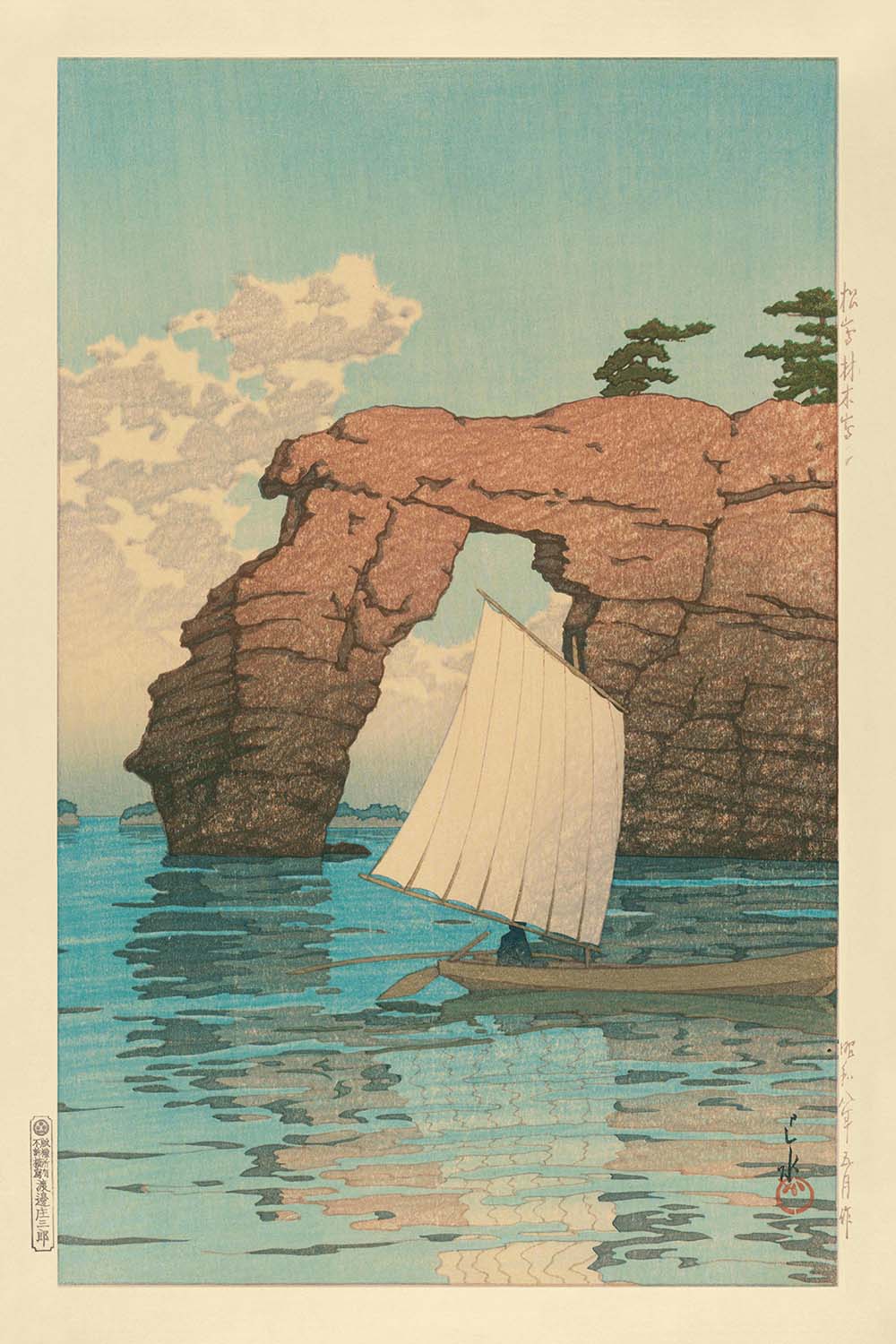 Voilier et l'île Zaimoku à Matsushima par Hasui Kawase, 1935