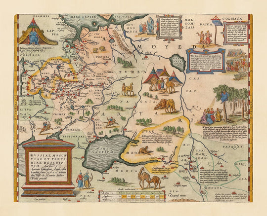 Ancienne Carte de Russie et Tartary, 1584 de Ortelius: Tableau rare de Moscou, Sibérie, Kazakhstan, Turkménistan, Ouzbékistan
