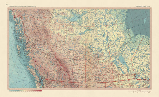 La carte 'Canada - Colombie-Britannique et provinces des Prairies' est un trésor d'informations géographiques et historiques. Elle présente des villes, des villages et des régions significatives, ainsi que des sites notables et des phénomènes naturels. La représentation d'Edmonton, Calgary, Vancouver et Winnipeg, parmi d'autres villes, offre un aperçu fascinant du développement urbain durant cette période. La carte met également en avant les caractéristiques naturelles uniques de la région, telles que les montagnes Rocheuses, les Grandes Plaines et les nombreux lacs et rivières qui parsèment le paysage.