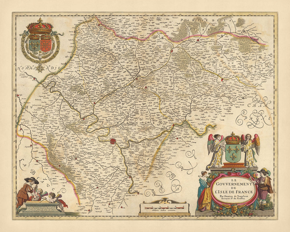 Carte ancienne de l'Île-de-France par Visscher, 1690: Paris, Versailles, Créteil, Compiègne, Parc du Vexin Français