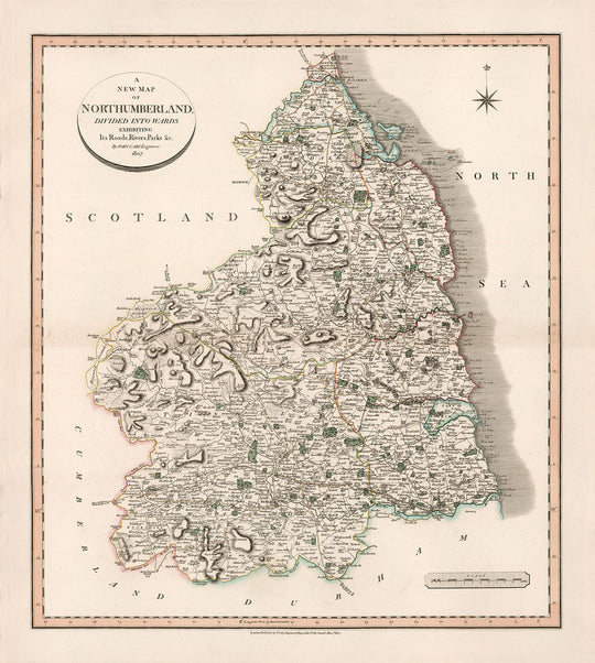 Cette merveilleuse vieille carte du Northumberland a été publiée à l'origine en 1801. Elle a été créée par John Cary.