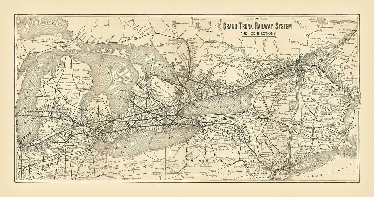 • Le Grand Trunk Railway était un précurseur du chemin de fer canadien national d'aujourd'hui.
