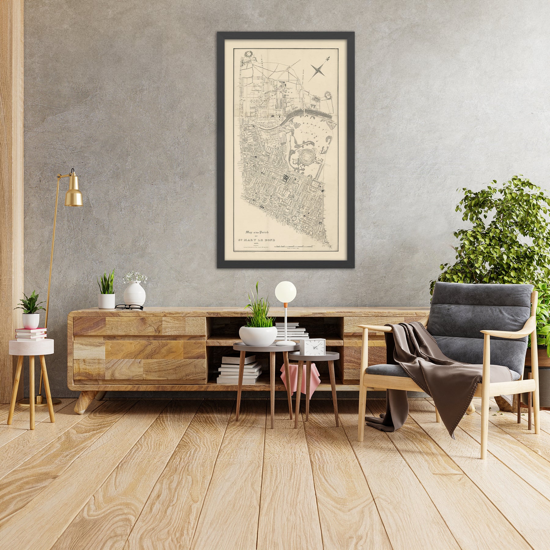 This map is also available as a float framed canvas, sometimes known as a shadow gap framed canvas or canvas floater. The map is printed on artist's cotton canvas and then stretched over a handmade box frame. We then "float" the canvas inside a wooden frame, which is available in a range of colours (black, dark brown, oak, antique gold and white). This is a wonderful way to present a map without glazing in front. See some examples of float framed canvas maps and explore the differences between my different finishes.