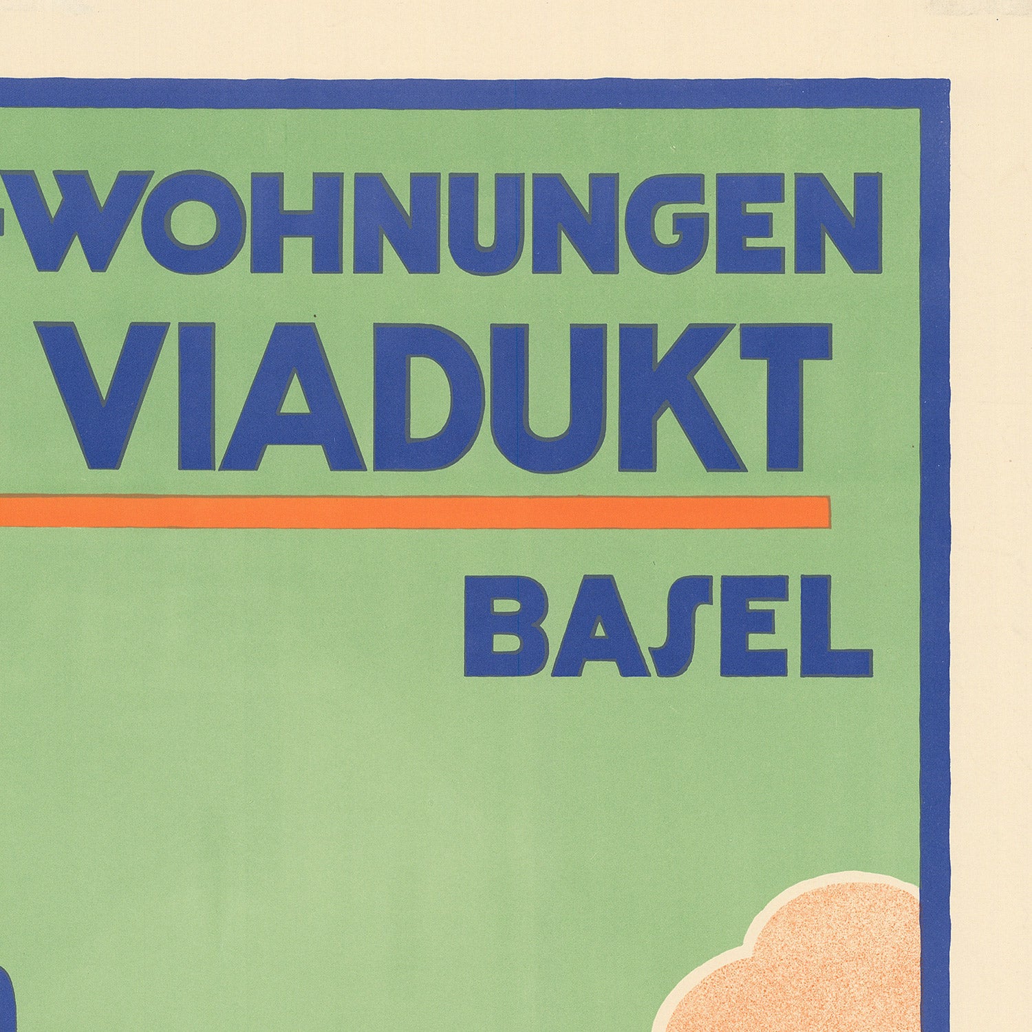Color, style, and why you’ll love it: Dürrwang’s palette—earthy browns for the masonry, soft greens in foliage and façades, and a calm blue sky accented with touches of orange—creates a warm, welcoming mood that suits contemporary interiors. Curvilinear forms in the viaduct arch play against the rectilinear windows to create a poised, architectural rhythm. The bold sans-serif title “Muster-Wohnungen Am Viadukt Basel” anchors the design with modern clarity, while the pared-back shapes and efficient strokes keep the scene elegant and uncluttered. It’s a piece that pairs beautifully with neutral schemes, Scandinavian woods, mid-century lines, and any room that calls for a refined nod to European urban design.