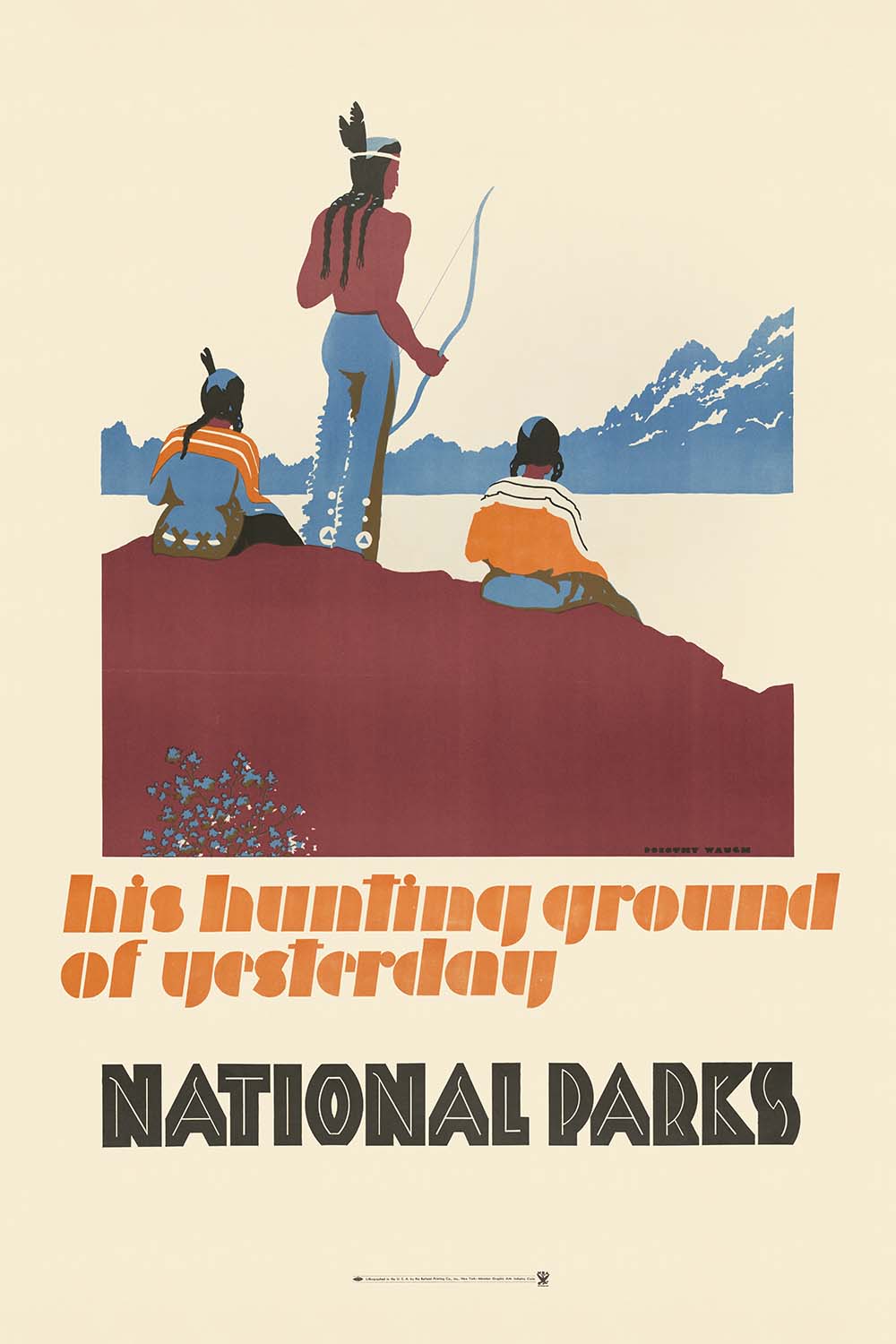 Dorothy Waugh studied design at the Art Institute of Chicago before moving to New York, where she managed Alfred A. Knopf’s children’s book department. In the 1930s she joined the National Park Service as a production supervisor and designer, creating a suite of posters known for their confident, hand-drawn type and graphic clarity. Her work stands among the most distinctive visual voices in American park promotion of the era, and her authorship adds notable pedigree for collectors of early twentieth-century design and women’s contributions to American graphic arts.