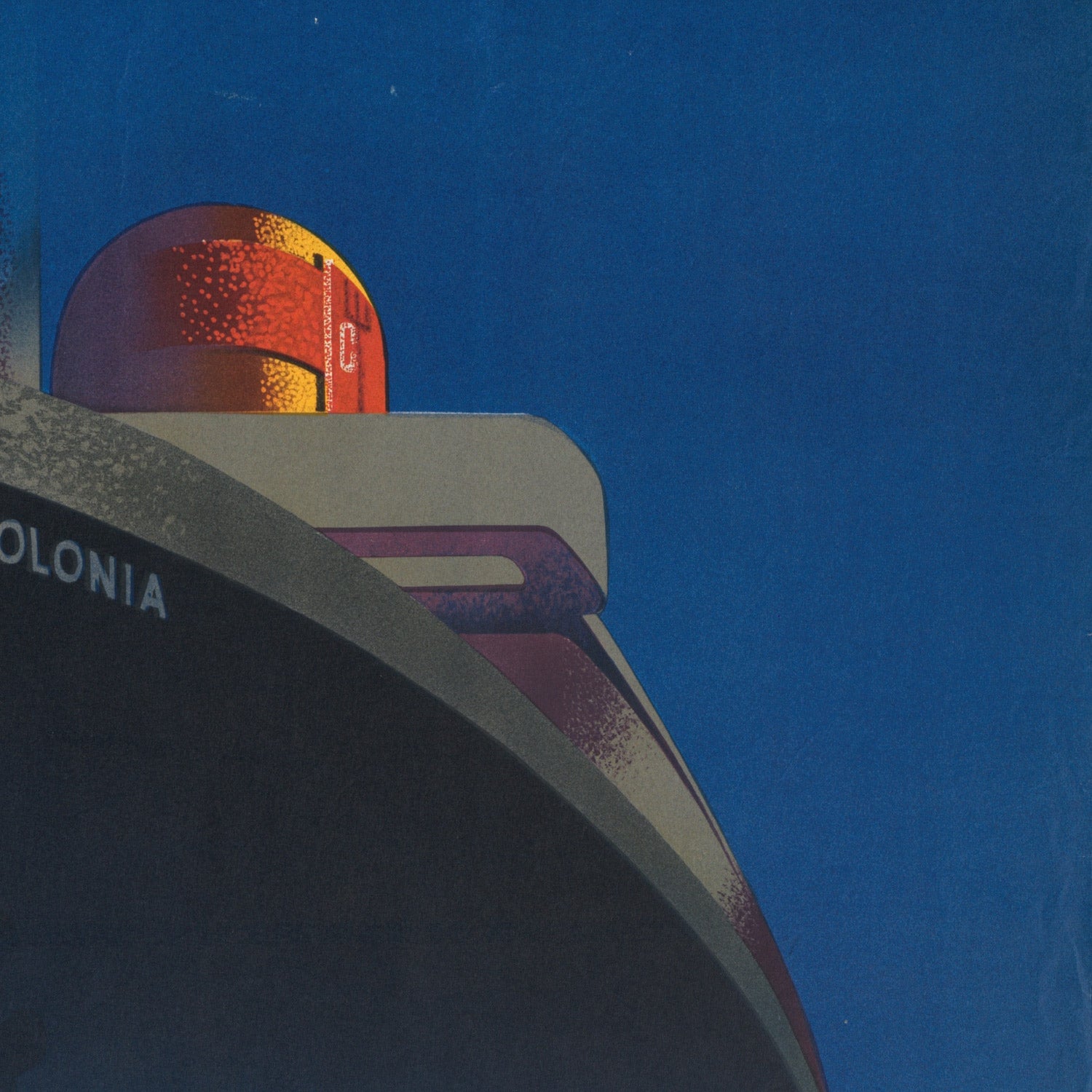 “Palestine Line” (1935) by T. Trepkowski is a quintessential Art Deco travel poster from the interwar era, celebrating maritime passage to the eastern Mediterranean at a time when ocean liners, streamlined design, and the romance of distant horizons stirred the imagination. Created during the British Mandate period, the work evokes the allure of journeys toward Palestine and the Levant—routes that linked European ports to sunlit harbors on the Mediterranean’s eastern shore. Its imagery—sleek ships set against a horizon that shifts from deep blue to warm, sandy tones—captures the era’s fascination with modern travel while nodding to the timeless desert landscape.