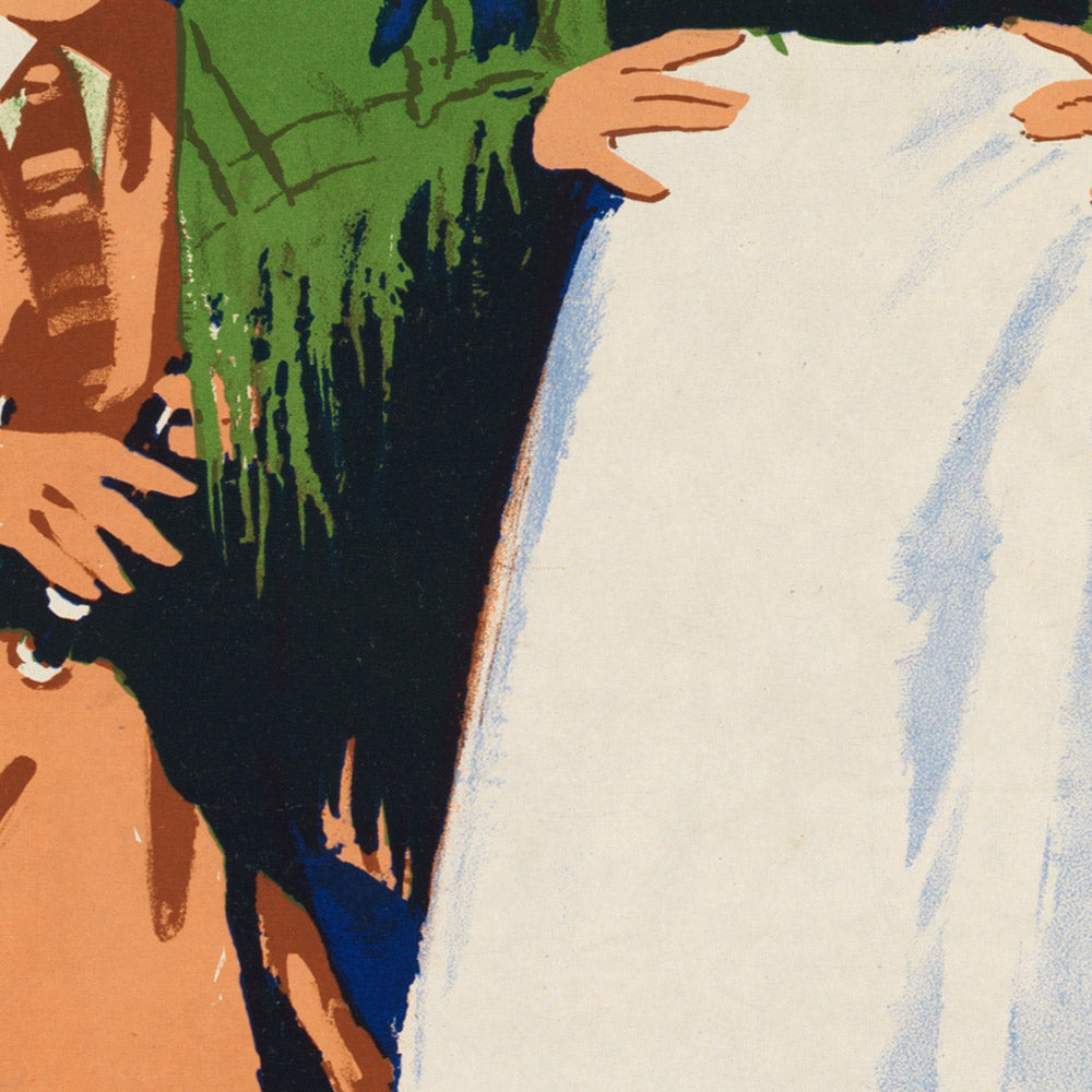 Historically, the poster sits at the intersection of cultural revival and modern mobility. As Ireland welcomed visitors by rail and sea, promotional art balanced national identity with worldliness. Here, the affectionate portrayal of rural life—evident in the protective sweep of the woman’s shawl and the boy’s small wind instrument—meets the aspirational spirit of Art Deco, promising fresh air, folklore, and freedom accessible by timetable.