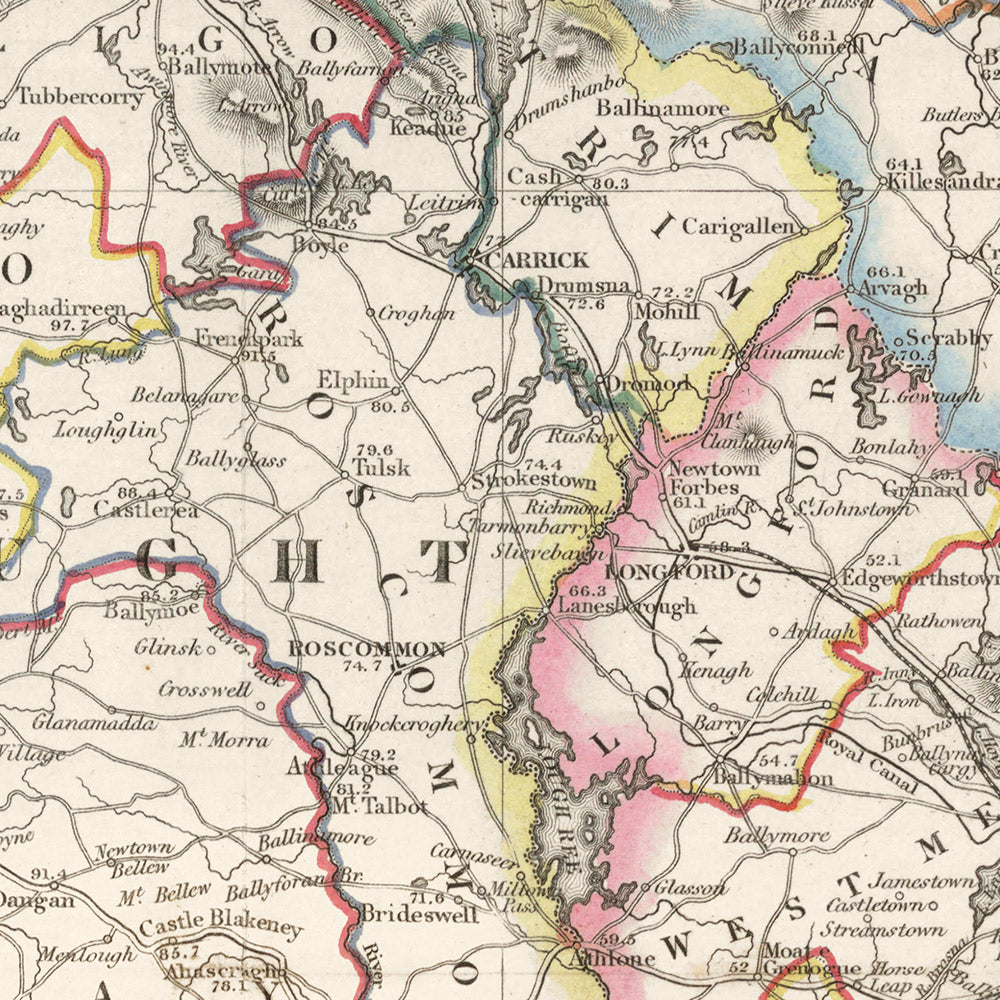 • Historical Significance: The map is part of 'Lewis's Atlas of Ireland' and serves as a valuable historical artifact reflecting the travel infrastructure and administrative divisions of Ireland in the mid-19th century.