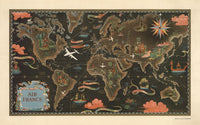 Creato nel 1947 per celebrare l'espansione della rete di Air France, questa è una delle mappe del mondo più belle che abbia mai visto. Creato da Lucien Boucher, un artista francese conosciuto come 'Mr Planisphere' da Air France, è famoso principalmente per una serie di bellissime mappe del mondo che ha realizzato per Air France.