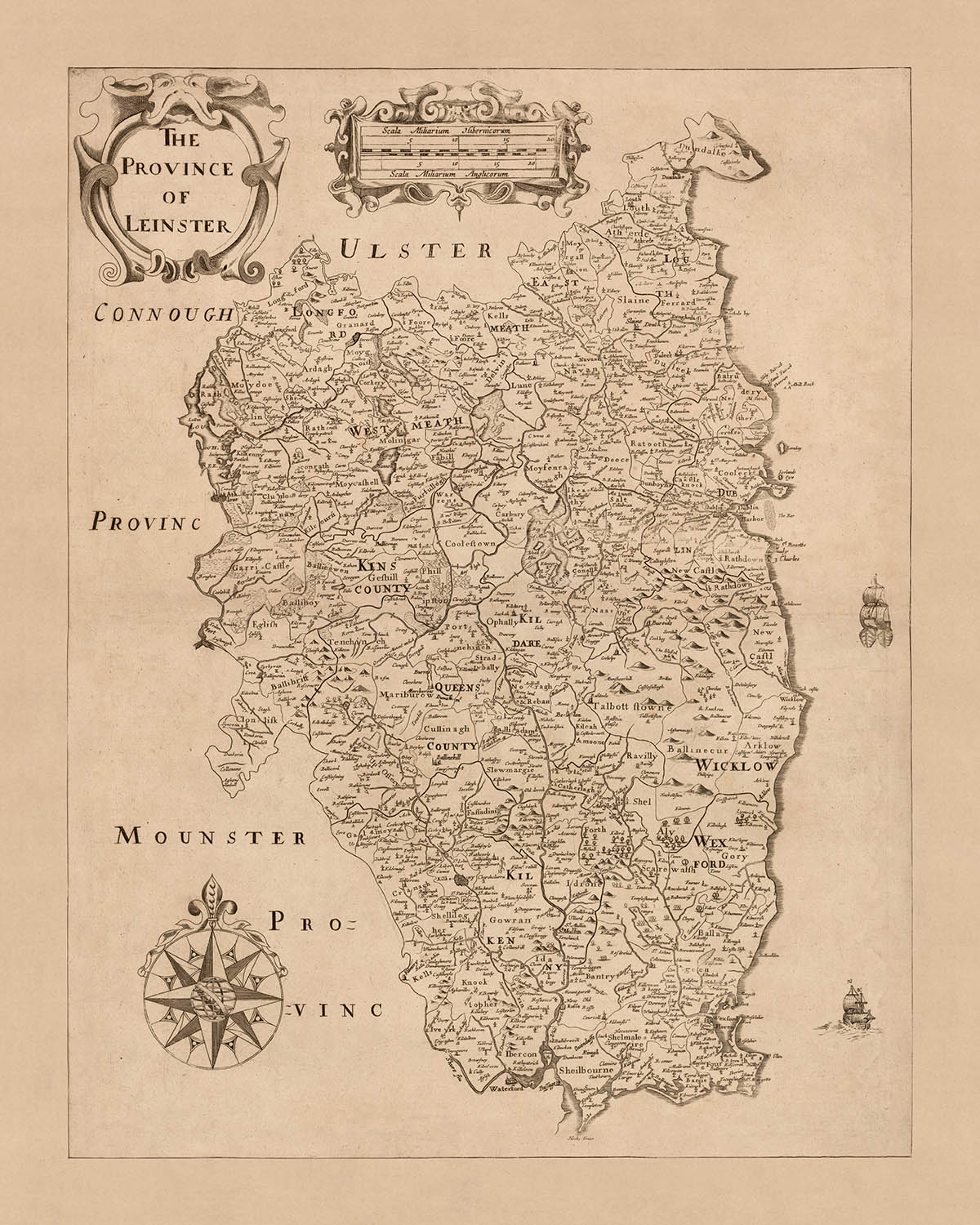 Antica mappa del Leinster di Petty, 1685: Dublino, Kilkenny, Wexford, Waterford, Kildare, Louth, Meath