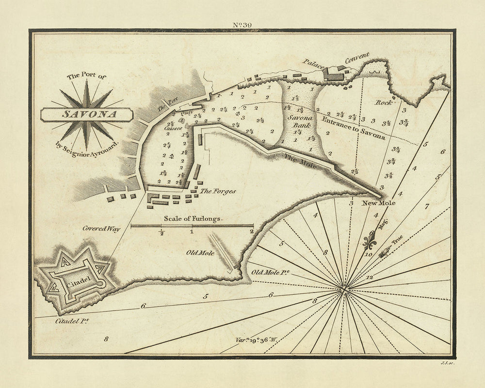 Carta nautica del Vecchio Porto di Savona di Heather, 1802: Porto, Cittadella, Convento