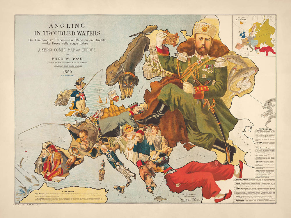 - Angling in Troubled Waters: A Serio-Comic Map of Europe (1899), by Frederick W. Rose