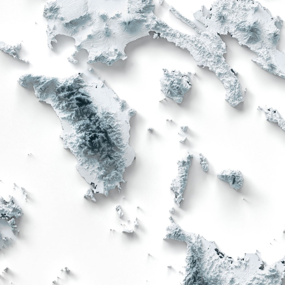 Our shaded relief prints use ultra high resolution topographic data and a secret 3D rendering process to create the illusion of raised terrain — like the mountains are about to lift right off the page. No labels, no borders, no distractions. Just the raw shape of the land, brought to life in a clean, modern style.