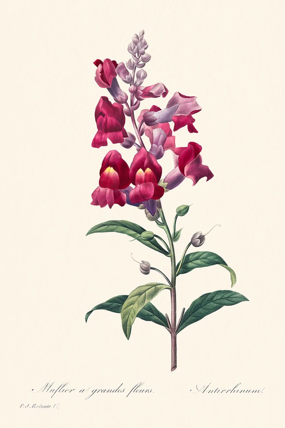 Beyond their artistic value, Redouté’s works serve as historical documents of plant species from the early 19th century, offering both aesthetic pleasure and educational insight. The detailed depiction of Anterinum exemplifies Redouté's mastery in color use and composition, reflecting not only his dedication to art but also a deep appreciation of nature’s splendor.