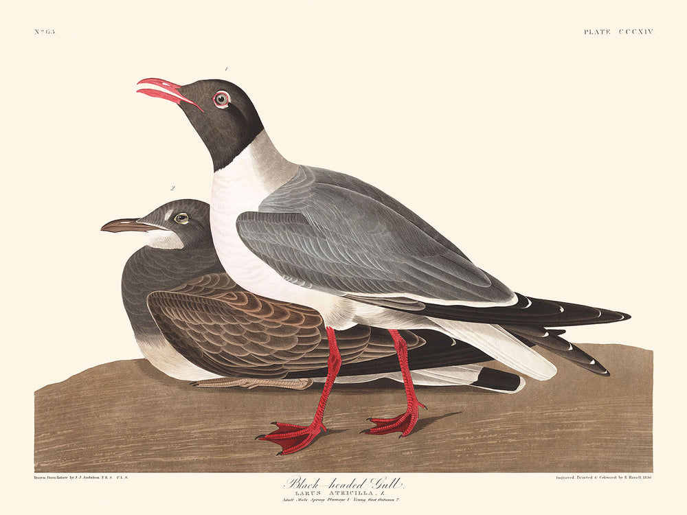 "Black-headed Gull (Plate 314)," first published in 1827, is an exquisite bird illustration by the illustrious John James Audubon, featured in his monumental work "The Birds of America." This distinctive piece captures the elegance and detail of the Black-headed Gull with striking clarity.