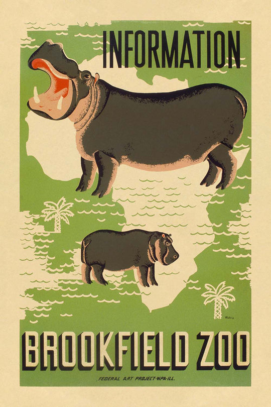 The subject of this poster—Brookfield Zoo—anchors it deeply in place. Opened in 1934, the zoo quickly became a Chicago-area destination for families and naturalists, emblematic of the city’s investment in public institutions during hard times. A poster promoting visitor information wasn’t merely advertising; it was civic infrastructure in print, guiding guests through habitats and exhibits and embodying the period’s belief that well-crafted design could make public life more welcoming and humane.