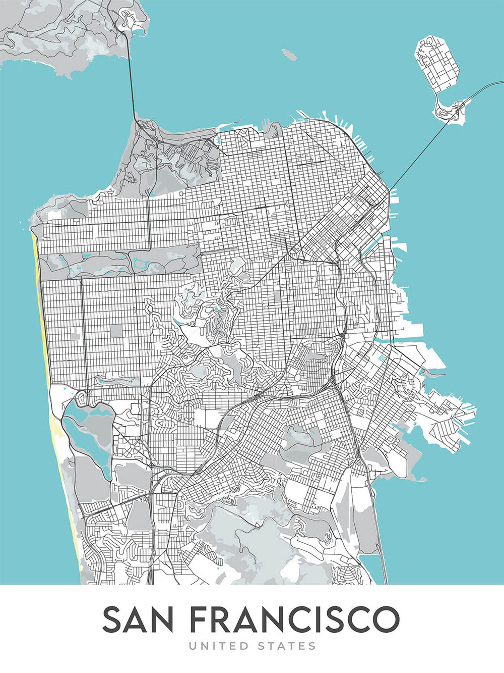 San Francisco is a city that is constantly evolving, and this map captures that spirit of innovation and creativity. It is a city that attracts people from all over the world, and this map is a testament to its enduring appeal. Whether you are a local, a tourist, or simply a lover of beautiful maps, this map of San Francisco is a must-have.