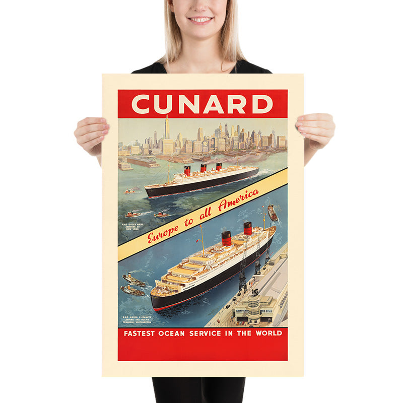 New York Travel Poster: Cunard – Fastest Ocean Service in the World, 1950s