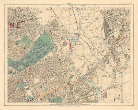 Originally hailed as "the most perfect map of London that has ever been issued" by the Royal Geographical Society when it was published in 1862, it's safe to say that Edward's Stanford's library map of London was a masterpiece of cartography. This here is a beautifully handcoloured map from the 1891 edition of Stanford's map.