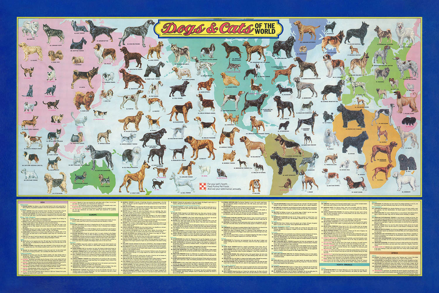 Old Dogs and Cats World Map by Purina, 1973: Global Breeds, 1970s Pet Culture