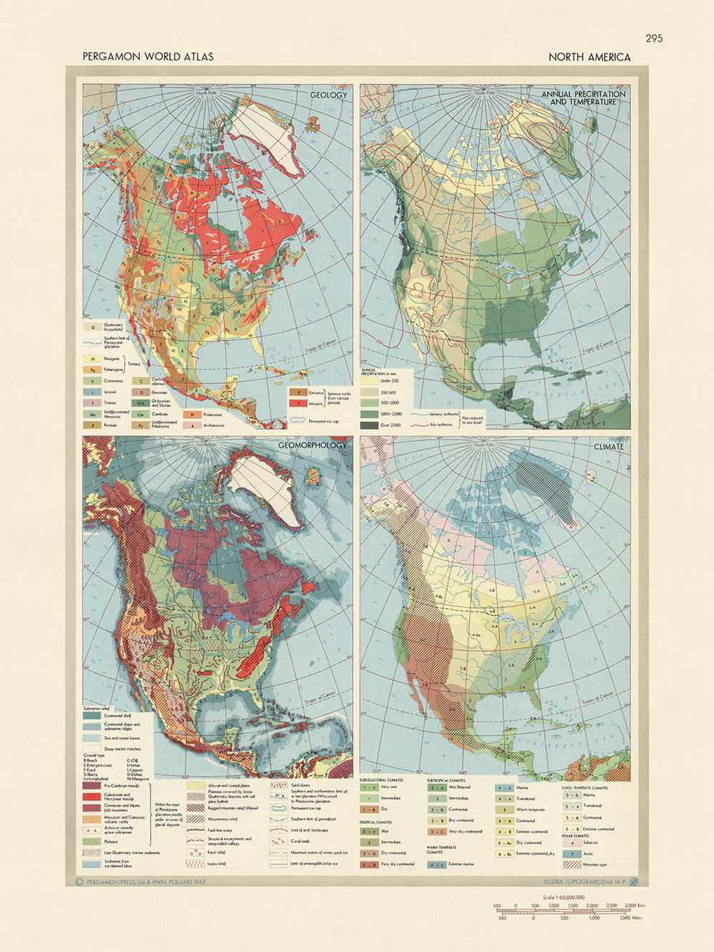 This North America Geology map, originally published in 1967 by the Polish Army Topography Service, is an exceptional piece of cartographic history. It is an infographic map, a style that presents data in an engaging and visually appealing manner, making it an intriguing collector's item for those interested in geology, history, and cartography.