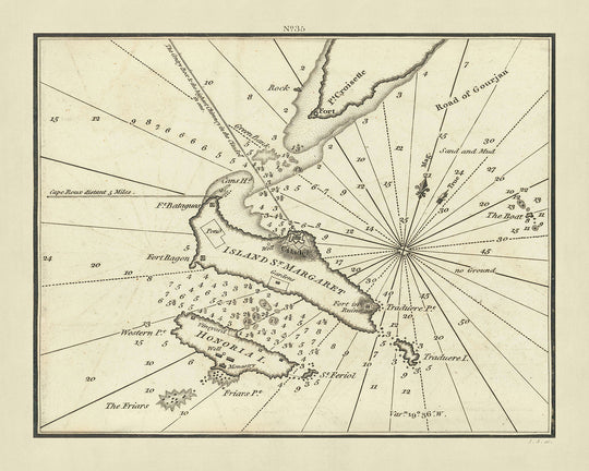 Embark on a Nautical Journey with "A Chart of the Islands of St. Margaret and St. Honorat"