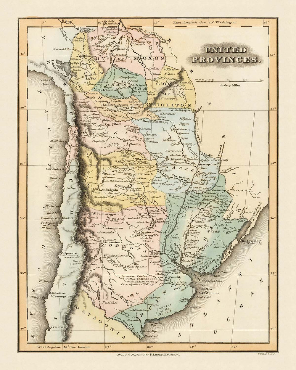 Old Map of Argentina by Lucas, 1823: United Provinces, Buenos Aires, Andes, Río de la Plata