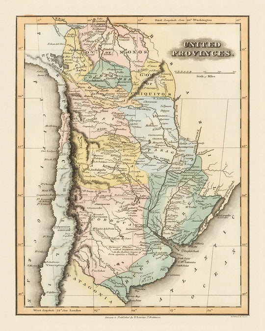 Discover the allure of history with the "United Provinces" map, crafted in 1823 by the esteemed cartographer Fielding Lucas Jr. This exquisite map captures the United Provinces of the Río de la Plata, a pivotal region in South America during the early 19th century. As you explore its intricate details, you'll journey back to a time when Argentina was on the cusp of independence, its provinces freshly carved from the former Viceroyalty of the Río de la Plata. The map not only delineates political boundaries but also vividly portrays the physical geography that shaped the region's destiny.