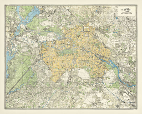 - Shows most of Greater Berlin, spanning from the Tegeler Sea to Neukölln, roughly depicting an area of ten by twenty miles.