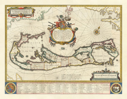 Published in 1640 by Willem Janszoon Blaeu, this is one of the finest, rarest and most beautiful old maps of Bermuda ever created.
