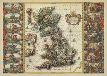 This is one of the oldest, finest and most fascinating maps of Great Britain, showing the nation as it was during Saxon times in 500-700 AD - an era known as the Heptarchy, as England and Wales were split into 7 Angle-Saxon kingdoms.