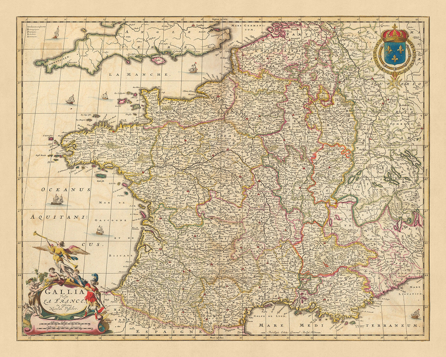 Old Map of France: 'Gallia Vulgo' by Visscher, 1690