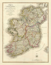 Old Map of Ireland in 1798 by W. Faden: Rare Colour Atlas Map