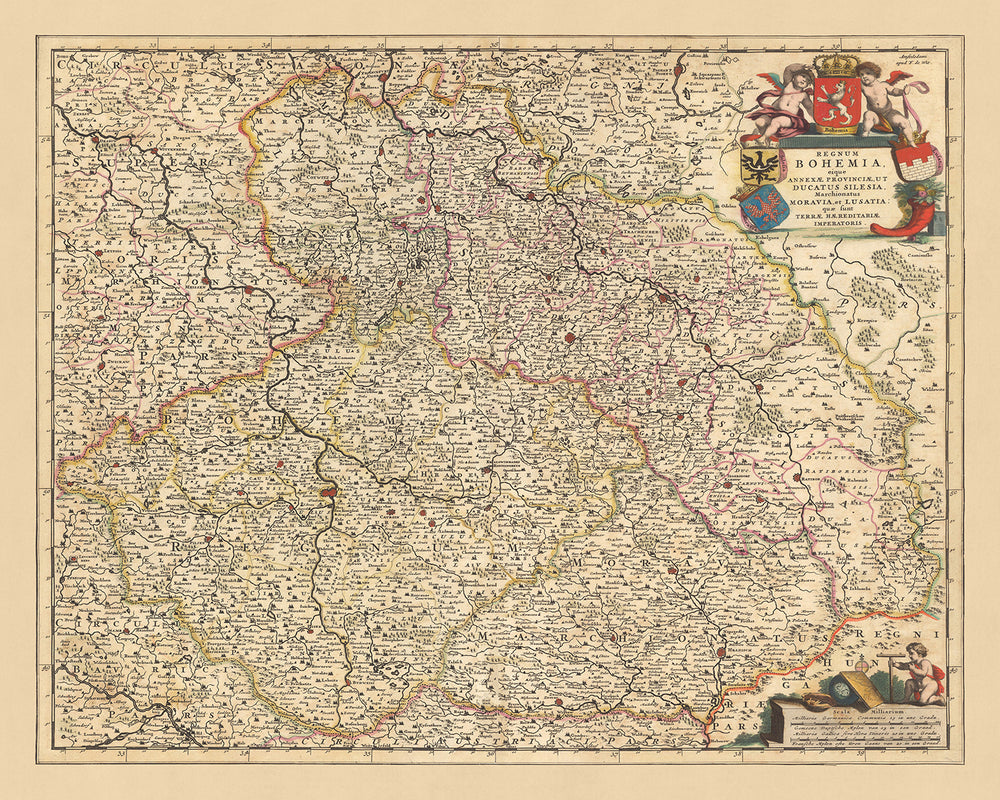 Old Map of Kingdom of Bohemia by Visscher, 1690: Prague, Brno, Ostrava, Wroclaw, Poznań