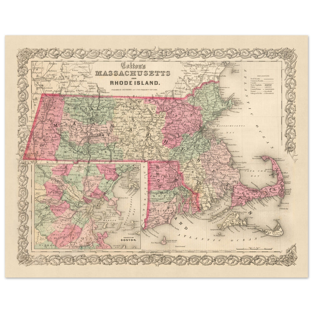 This map is a remarkable piece of American history, hailing from the mid-19th century, a period of significant growth and change in the United States. Crafted by J.H. Colton, widely recognized as one of the finest American mapmakers of his era, this 1855 map of Massachusetts offers a fascinating glimpse into the early days of the nation. At this time, many settlements that we know today had not yet been founded, and the names and borders of those that had been established were likely different from what we are familiar with today.