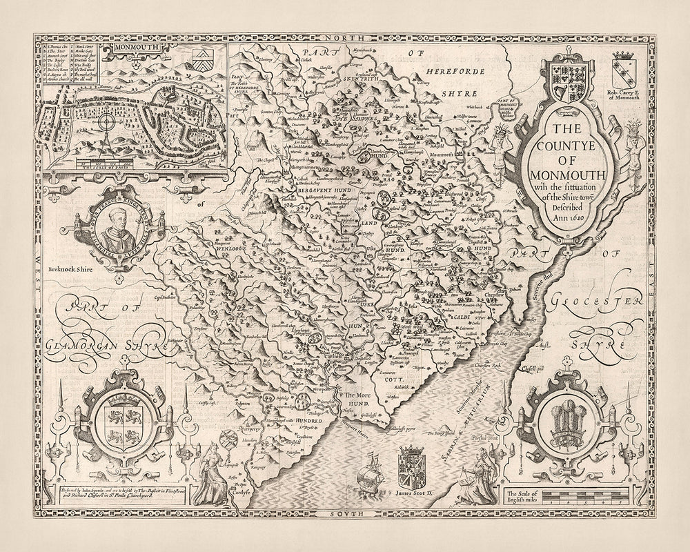 Old Map of Monmouthshire by Speed, 1610: Monmouth, Abergavenny, Chepstow, Newport, Usk