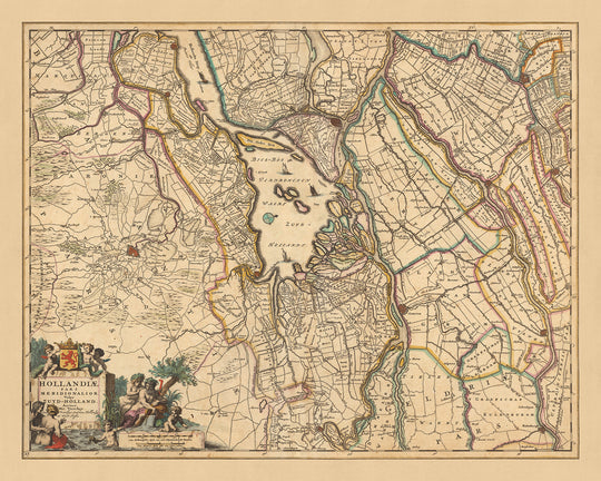 Discover the rich historical tapestry of the Netherlands with this meticulously detailed map of South Holland, or 'Hollandiae pars meridionalior, vulgo Zuyd-Holland' as it is originally named. Crafted by the esteemed mapmaker Nicolaes Visscher II in 1690, this map offers a fascinating glimpse into the geographical and political landscape of the Dutch Golden Age. The map focuses on the southern part of Holland, a region that is now a significant part of modern-day Netherlands.