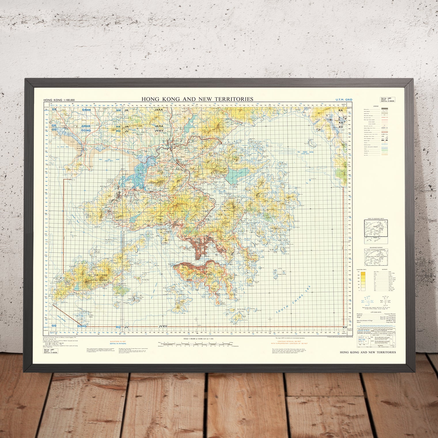 Old Military Topographic Map of Hong Kong, 1970: Victoria Harbour, Kowloon, New Territories, Lion Rock, Plover Cove Res